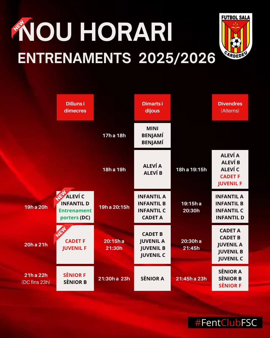 HORARIS ENTRENAMENTS